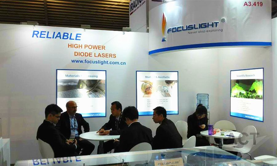中國(guó),西安,2015年6月24日-西安炬光科技有限公司攜全系列產(chǎn)品及近期推出的新品系列于當(dāng)?shù)貢r(shí)間22號(hào)早上9點(diǎn)整亮相德國(guó)慕尼黑光博會(huì)。作為全球領(lǐng)先的半導(dǎo)體激光器供應(yīng)商,炬光科技的產(chǎn)品一直受到業(yè)內(nèi)外的廣泛關(guān)注,本次展會(huì)上展出的專業(yè)級(jí)脫毛激光器FocusMed®新品系列,采用全鍍金cooler,外觀全面升級(jí),最低可使用自來水冷卻,產(chǎn)品質(zhì)保最長(zhǎng)可達(dá)2年(或2千萬次脈沖)。同時(shí)展出的FocusPump™新品系列采用無銦化封裝技術(shù)及自來水冷卻的方式,產(chǎn)品壽命達(dá)兩萬小時(shí),作為泵浦源廣泛適用于工業(yè)加工及科研等領(lǐng)域。