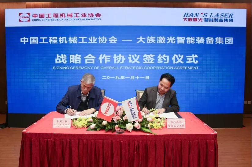 2019年1月11日-12日,大族激光智能裝備集團(tuán)與中國(guó)工程機(jī)械工業(yè)協(xié)會(huì)戰(zhàn)略合作協(xié)議簽約儀式暨參觀交流活動(dòng)在深圳舉行。雙方致力于建立互惠、共贏的戰(zhàn)略合作關(guān)系,攜手推進(jìn)智能制造裝備在工程機(jī)械行業(yè)的深入應(yīng)用。