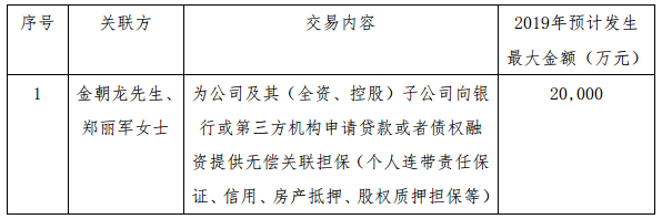 1月15日,天弘激光發(fā)布公告稱,根據(jù)公司經(jīng)營發(fā)展的安排,預(yù)計2019年度日常性關(guān)聯(lián)交易金額不超過人民幣20,000萬元。 公告顯示,金朝龍持有天弘激光20.31%的股份,鄭麗軍持有天弘激光6.52%的股份,金朝龍與鄭麗軍為夫妻關(guān)系,合計持有公司26.83%的股份。金朝龍與鄭麗軍為天弘激光的控股股東及實際控制人,屬于公司的關(guān)聯(lián)方。