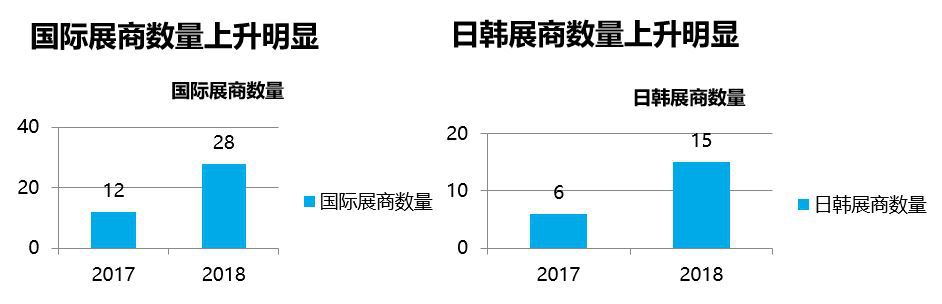 展會國際影響力大幅度提升 DISPLAY CHINA 2018 日韓展商以及非日韓地區(qū)國際展商數(shù)量相比2017有大幅度的提升,其中,有6家來自世界500強企業(yè)。