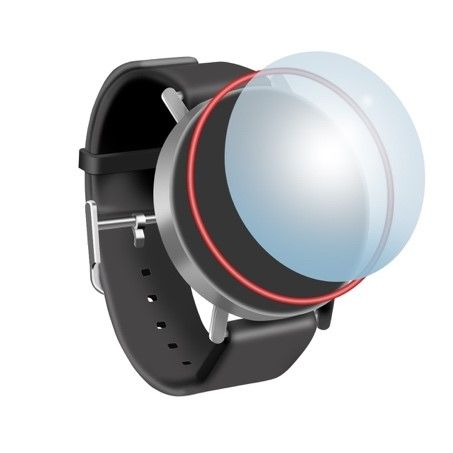 圖1:對智能手表外殼上的觸摸屏進行防水密封。紅色的粘合劑完全自動裝填并進行激光激活