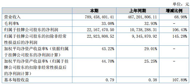4月10日,邦德激光發(fā)布2018年年度報(bào)告。 報(bào)告期內(nèi),邦德激光實(shí)現(xiàn)營(yíng)業(yè)收入789,458,401.41元,較去年同期增長(zhǎng)了68.98%,主要原因是公司產(chǎn)品建立較強(qiáng)的品牌影響力,公司銷售量和銷售額都增長(zhǎng)明顯;營(yíng)業(yè)成本較上年度增長(zhǎng)68.59%,主要原因是隨著營(yíng)業(yè)收入增長(zhǎng),營(yíng)業(yè)成本也相應(yīng)增長(zhǎng)。公司本期毛利率33.08%,與全年同期相比略有增長(zhǎng)。 邦德激光本期實(shí)現(xiàn)歸屬于掛牌公司股東的凈利潤(rùn)22,167,470.50元,較去年同期增長(zhǎng)106.43%,增長(zhǎng)幅度高于營(yíng)業(yè)收入增長(zhǎng)幅度,主要原因是:①本期毛利率略有增長(zhǎng),營(yíng)業(yè)成本增幅68.59%低于營(yíng)業(yè)收入增幅68.98%;②報(bào)告期內(nèi),公司合理控制費(fèi)用支出,公司管理費(fèi)用減少6,387,031.12元,同比降低18.48%。