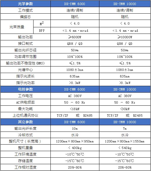 隨著激光應用技術(shù)的發(fā)展,在工業(yè)加工、空間光通訊、光電對抗等諸多領(lǐng)域都需要使用高功率、高光束質(zhì)量的激光光源。一般來說,光束質(zhì)量M2<1.3稱為單模激光,1.3<M2<2為準單模激光,M2>2為多模激光。在多模激光里面,2<M2<4可以稱之為高亮度多模激光器。高亮度多模激光器雖然屬于多模激光,但是它仍然保持了很多單模激光高亮度的特性,同時在成本控制、穩(wěn)定性以及抑制非線性效應等等方面都比單;驕蕟文<す庖煤芏,所以在某些應用領(lǐng)域呈現(xiàn)出無可替代的優(yōu)勢。 在技術(shù)方案實現(xiàn)上,由于單纖激光器的功率擴展存在理論極限,并且在實際開發(fā)中遇到了模式不穩(wěn)定、非線性效應等等困難,所以目前10kW以上高亮度光纖激光光源都是采用了多個光纖激光模塊光束合成的方式。光束合成分為相干合成和非相干合成兩大類。在非相干合成領(lǐng)域,又分成功率合束器和光譜合束兩種方式。盡管相比光譜合束等其他新型合束方案,通過光纖功率合束器會帶來較多的光束質(zhì)量退化,但是它仍然是目前應用最早、技術(shù)最成熟、方案最簡潔、運行最穩(wěn)定的一種方式。 以功率合束器為核心技術(shù)的多模激光器最早報道是IPG公司,他們在2009年實現(xiàn)了10.5kW多模輸出并申請專利,在2013年推出了高達100kW多模工業(yè)化產(chǎn)品。我國的高功率光纖激光器起步較晚,但是近年來發(fā)展迅速。例如銳科于2017年啟動30kW工業(yè)級光纖激光器國家重點項目,創(chuàng)鑫于2019年推出30kW工業(yè)級激光器?梢哉f短短幾年內(nèi),10-15kW功率合束多模激光器已經(jīng)成為國內(nèi)各個光纖激光器廠商的標配。盡管目前多模高功率激光器在工業(yè)領(lǐng)域的運用已經(jīng)越來越廣泛,但是市場上大多數(shù)6-10kW量級工業(yè)多模激光器的光束質(zhì)量因子 M2≈ 10-11 。 與眾不同,湖南大科激光有限公司近年推出了高亮度大功率多模光纖激光器,引領(lǐng)了多模光纖激光器發(fā)展的潮流。以6kW和10kW光纖激光器為例,大科激光的高亮度多模激光產(chǎn)品參數(shù)如下表所示: