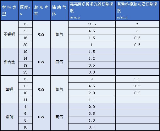 從表中可以看出,與普通6kw多模激光器相比,湖南大科6kw高亮度多模激光器針對厚板高反材料切割有明顯的加工優(yōu)勢。例如切割黃銅的速度是普通多模6kw切割速度的二到三倍,有效提升了加工效率,能夠為客戶節(jié)約可觀的生產(chǎn)成本。