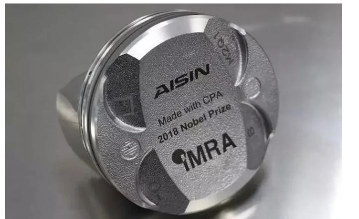 從頂部看到,兩個(gè)玻璃基板已經(jīng)通過(guò)飛秒激光焊接,留下四條由光學(xué)條紋包圍的垂直焊接線;插圖所示為其中一條線的特寫(xiě),表明焊縫寬度為100μm。 汽車(chē)行業(yè) 飛秒脈沖激光在制造業(yè)的應(yīng)用將持續(xù)發(fā)展和擴(kuò)張。由于汽車(chē)行業(yè)需要高穩(wěn)定性、高可靠性以及創(chuàng)新性,因此飛秒脈沖激光備受汽車(chē)行業(yè)的關(guān)注。例如,目前飛秒激光器已經(jīng)用于發(fā)動(dòng)機(jī)零件(包括活塞)的大批量處理(見(jiàn)下圖)。