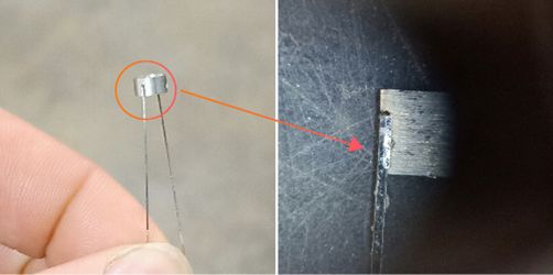 應(yīng)用案例:汽車動力方形鋰電池電極片點焊; 應(yīng)用要求:0.1mm鎳極耳片點焊到0.1mm鋁殼,焊接牢固; 應(yīng)用分析:對比YAG激光器,QCW輸出能量更均勻穩(wěn)定,能量控制更精細(xì),更適合薄材料點焊。 三、醫(yī)療行業(yè) 1、精密醫(yī)療配件焊接