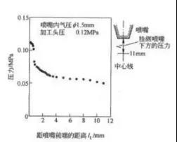 圖2噴嘴下方不同距離處噴出氣體壓力分布圖