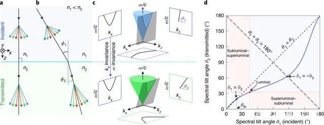 該研究團(tuán)隊(duì)通過(guò)使用一種稱為空間光調(diào)制器的設(shè)備來(lái)重組時(shí)空波包,以重組光脈沖的能量,從而使其在空間和時(shí)間上的特性不再分離。這使他們能夠控制光脈沖的“群速度”,這大約是脈沖峰值傳播的速度。 先前的工作表明,該團(tuán)隊(duì)具有控制時(shí)空波包的群速度的能力。當(dāng)前的研究基于這項(xiàng)工作,發(fā)現(xiàn)它們還可以控制時(shí)空波包通過(guò)不同媒體的速度。這與狹義相對(duì)論沒(méi)有任何矛盾,因?yàn)樗m用于脈沖峰值的傳播,而不是適用于光波的基本振蕩。