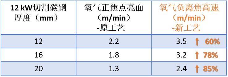 新工藝對激光設(shè)備有要求嗎? 經(jīng)工藝應(yīng)用測試,功率在12 kW及以上激光器采用碳鋼氧氣負(fù)離焦高速切割工藝,能顯著提升切割能力,效率和質(zhì)量。并且,隨著功率的提高,加工速度顯著提升,工件更容易落料,同時(shí)加工穩(wěn)定性也進(jìn)一步提升。