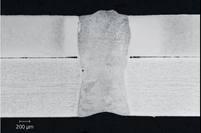 ■不同焊接接頭之間的沖壓硬化馬氏體鉻鋼(頂端厚度0.9mm)和高錳鋼(底端厚度1.2mm)(圖片來源:Fraunhofer ILT) 不同焊縫的反應各不相同 但是應用不同化合物會產生怎樣的結果呢?回火行為不同,結果就不同。對1.4034鋼和雙相細晶組織鋼組合的研究表明,回火溫度為400℃也能實現(xiàn)很好的效果。這種情況與其他材料不同:處理硬質錳硼鋼時要小心,因為它們在300℃時就會失去強度,而這個溫度對1.4034鋼沒有很大影響。 表面涂層改善了激光熱處理 實驗得出的數(shù)據為未來的激光熱處理帶來解決方案。研究所展示了一種在半導體激光器的下游加工過程中有效的回火方法。測量的硬度值表明溫度可達650℃,這是將材料回火卻不損失其強度的最高溫度。 激光熱處理允許在搭接處進行選擇性熱處理,以便只對關鍵材料進行加工。表面的光學特性可以專門用于熱處理。對此Dahmen進行了相應描述:“焊縫吸收程度增加導致焊縫和熔合線回火,而熱影響區(qū)接收的熱量輸入較少。調整強度分布,就有可能顯著提高效率。” 電池盒顯示焊接質量 測試表明,激光不能對硬化奧氏體和冷軋細晶粒組織鋼進行熱處理。在400℃時,激光可以回火處理1.4034/雙相鋼DP980這樣的材料組合。弗勞恩霍夫激光技術研究所計劃在未來項目中利用這些結果進一步發(fā)展基于激光的加工過程。 這些結果可作為依據,計算、設計安裝有防撞架的電池盒。模塊載體由超高強度和超延展性鋼的混合材料組成。當碰撞架由非硬化高錳鋼制成時,弗勞恩霍夫激光技術研究所用高比能吸收來吸收沖擊力。高比能吸收來自于變相孿晶。得益于這種組合,電池的空載重量約為70公斤,大大低于傳統(tǒng)的鋼電池盒,后者的整體設計重量可達150公斤。
