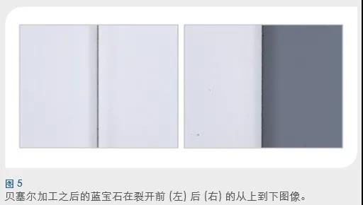 除了玻璃,貝塞爾工藝還可有效地切割薄藍(lán)寶石,該材料用于 LED, 可穿戴設(shè)備和移動設(shè)備。與經(jīng)測試的玻璃不同,最佳藍(lán)寶石切割結(jié)果是采用更高 PRF, 更高速度的工藝。 在 1000 mm/s 和 400 kHz PRF 時, 間距 (材料上入射的激光脈沖之間的距離)大于用于玻璃的間距; 然而切割線和邊緣表面, 如圖 5 中所示, 仍然連續(xù)且均勻, 與玻璃的結(jié)果非常相似。