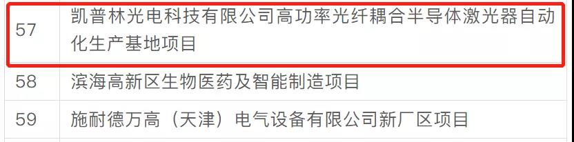 日前,天津市公布了2021年重點(diǎn)項(xiàng)目清單,清單涵蓋產(chǎn)業(yè)科技創(chuàng)新、基礎(chǔ)設(shè)施、農(nóng)林生態(tài)、社會(huì)民生和其他等五大重點(diǎn)領(lǐng)域,凱普林光電“高功率光纖耦合半導(dǎo)體激光器自動(dòng)化生產(chǎn)基地項(xiàng)目”被列入先進(jìn)制造業(yè)重點(diǎn)項(xiàng)目,與眾多大型企業(yè)一起受到市政府重點(diǎn)推動(dòng)。