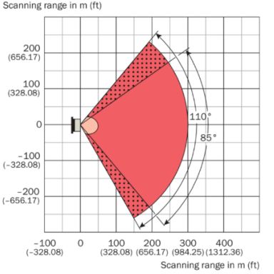 產(chǎn)品特性 測量性能 › 最大掃描距離: 320m › 10% 反射率: 30m › 90% 反射率: 150m › 掃描角度: 水平85° (可擴(kuò)展到110°) 垂直6.4° › 角度分辨率: 水平0.125° 垂直0.8° › 掃描頻率: 12.5-50HZ › 系統(tǒng)誤差: ±300mm › 統(tǒng)計誤差: 100mm 電子&機(jī)械性能 › 專用自鎖功能線纜 › 供電電壓: 9…27 VDC › 工作環(huán)境溫度:-40~70°C › 典型功耗: 8W › 防護(hù)等級: IP69K › 重量: 770g › 抗環(huán)境光干擾能力: 100K Lux