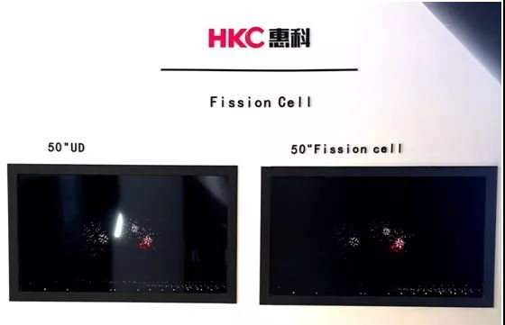 為了讓LCD液晶顯示性能與OLED自發(fā)光顯示看齊,F(xiàn)ission Cell技術除了將對比度超越現(xiàn)行的OLED以外(500000:1),其色彩表現(xiàn)也較現(xiàn)行OLED顯示提升,搭配雙屏混合插黑技術更可以彌補先前LCD顯示響應速率的不足,達到與OLED相同之水平,且其成本遠低于同尺寸的OLED顯示,可成為高性價比的市場選擇。