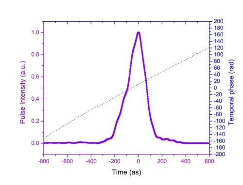 阿秒脈沖時域及相位分布 圖片來源:西安光學(xué)精密機(jī)械研究所
