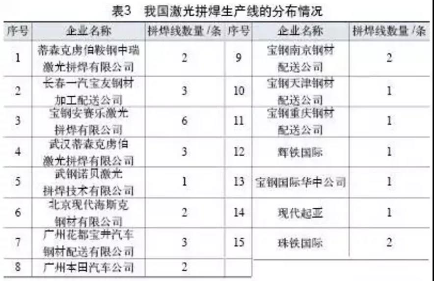 2002~2009年,我國已建成了32條激光拼焊生產(chǎn)線,如下表所示。隨著我國激光拼焊生產(chǎn)線的不斷發(fā)展,正在逐漸替代進(jìn)口激光拼焊板。國外先進(jìn)鋼鐵公司的經(jīng)驗(yàn)表明,汽車制造業(yè)所采用的激光拼焊技術(shù)是鋼鐵行業(yè)延伸產(chǎn)業(yè)鏈的一種行之有效的技術(shù)。