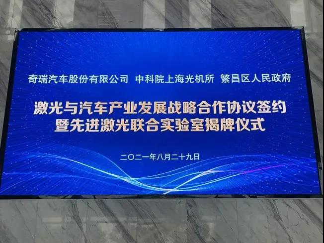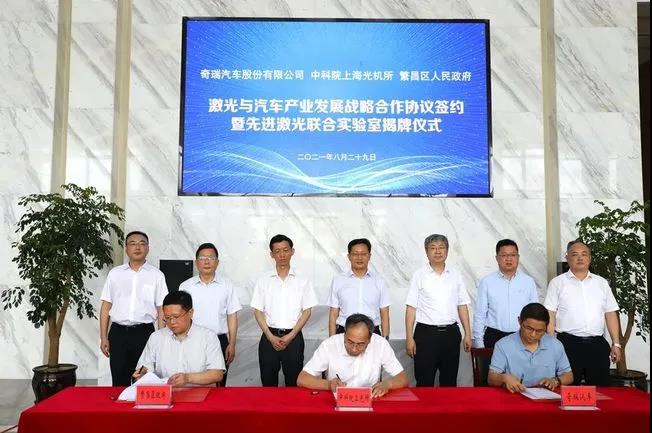 2021年8月29日,中科院上海光機所、奇瑞汽車股份有限公司、繁昌區(qū)人民政府 “激光與汽車產(chǎn)業(yè)發(fā)展戰(zhàn)略合作協(xié)議簽約暨先進激光聯(lián)合實驗室揭牌”活動在繁昌中科春谷激光產(chǎn)業(yè)園舉行。