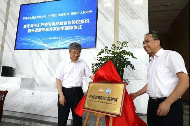 上海光機所與奇瑞汽車合作成立的先進激光聯(lián)合實驗室,依托上海光機所科研資源和奇瑞汽車研發(fā)制造能力,在鋼鋁混合車身激光焊接、激光雷達、激光顯示、燃料電池電堆智能制造等領域開展聯(lián)合創(chuàng)新,加快激光技術在汽車產(chǎn)業(yè)中的示范應用。陳衛(wèi)標、尹同躍共同為先進激光聯(lián)合實驗室揭牌。