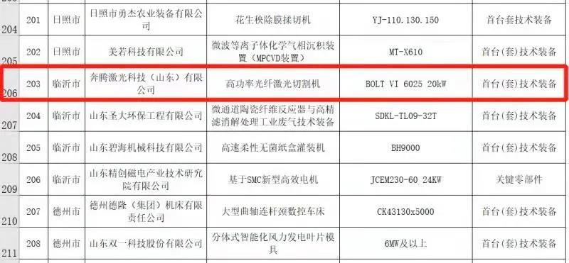 近日,根據(jù)《2021年度山東省首臺(套)技術裝備及關鍵核心零部件生產(chǎn)企業(yè)及產(chǎn)品公示名單》,奔騰激光科技(山東)有限公司“BOLT VI 20kW高功率光纖激光切割機”成功入先選。