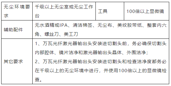 創(chuàng)鑫激光LOE型萬瓦光纖激光輸出頭 2、萬瓦切割頭安裝及維護(hù) 安裝環(huán)境及要求: