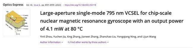 近日,中科院長春光機所在量子陀螺專用芯片研發(fā)上取得進展,研制出795納米的垂直腔面發(fā)射激光器芯片,具有實際應用價值。相關成果發(fā)表在《Optics Express》期刊。