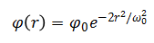 圖2 YFPN-250-GM激光器及參數(shù)表 眾所周知,談到激光清洗就無法避開材料的清洗閾值和損傷閾值,我們對極片涂層清洗用的工藝參數(shù)剛好需介于材料的清洗閾值與損傷閾值之間。損傷閾值是一個與激光器本身和材料有關(guān)的固有參數(shù),一般都是通過實驗的方式獲得。 損傷閾值計算原理 如圖3,為高斯光束的光強分布圖,其能量密度與截面半徑之間的關(guān)系是:
