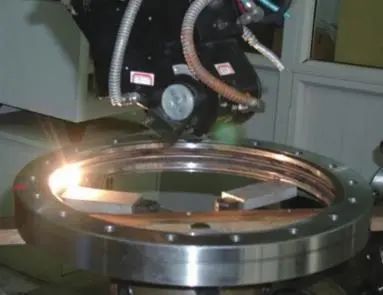 圖 3 重載軸承的激光深層淬火 (三)激光熔覆技術(shù) 激光熔覆技術(shù)產(chǎn)生于 20 世紀(jì) 70 年代,美國AVCO 公司率先開展汽車發(fā)動(dòng)機(jī)易磨損零部件的表面強(qiáng)化應(yīng)用。目前,相關(guān)技術(shù)在汽車、動(dòng)力裝備、軌道交通等領(lǐng)域得到廣泛應(yīng)用。日本、美國企業(yè)將激光增材再制造技術(shù)商業(yè)化,批量修復(fù)了軍用飛機(jī)發(fā)動(dòng)機(jī)的磨損失效零件,節(jié)約經(jīng)費(fèi)并提高了修復(fù)效率 。在汽車工業(yè)領(lǐng)域,采用激光熔覆技術(shù)對(duì)汽車曲軸進(jìn)行表面修復(fù),獲得了與曲軸表面結(jié)合緊密且性能良好的熔覆涂層。德國發(fā)展了超高速激光熔覆技術(shù)(EHLA),可在短時(shí)間內(nèi)完成大面積涂層的快速制備,熔覆層厚度在 0.1~0.25 mm 范圍可調(diào),生產(chǎn)速度比傳統(tǒng)激光熔覆提高 100~250 倍,可取代電鍍、熱噴涂、堆焊等傳統(tǒng)技術(shù)。 20 世紀(jì) 80 年代以來,我國激光熔覆技術(shù)發(fā)展迅速,已經(jīng)從實(shí)驗(yàn)室研究擴(kuò)展到工程實(shí)際應(yīng)用,如航空航天、動(dòng)力裝備、機(jī)械工業(yè)、石油化工、汽車等行業(yè)。機(jī)械科學(xué)研究總院集團(tuán)有限公司、哈爾濱工業(yè)大學(xué)與國外機(jī)構(gòu)進(jìn)行聯(lián)合研發(fā),實(shí)現(xiàn)了超高速激光熔覆技術(shù)的工程應(yīng)用。西北工業(yè)大學(xué)開展了鈦合金零件的激光修復(fù)研究,成功修復(fù)了航空零部件。浙江工業(yè)大學(xué)將激光熔覆技術(shù)應(yīng)用于汽輪機(jī)葉片強(qiáng)化和汽輪機(jī)轉(zhuǎn)子修復(fù),對(duì)失效轉(zhuǎn)子進(jìn)行回收和再制造利用,延長轉(zhuǎn)子使用壽命約2~3 倍(見圖 4)。激光熔覆技術(shù)大量應(yīng)用于機(jī)械工業(yè)中的軸承、曲軸、模具、螺桿、刀具等易損易耗零部件。例如,以激光熔覆技術(shù)對(duì)天然氣凈化廠汽輪機(jī)氣缸變形位置進(jìn)行現(xiàn)場(chǎng)修復(fù),消除了氣缸漏氣現(xiàn)象;在 45 鋼曲軸連桿軸頸上激光熔覆鐵基合金粉末,形成相當(dāng)于基體 2~3 倍硬度的熔覆層,解決了曲軸軸頸易出現(xiàn)裂紋和過度磨損的問題。