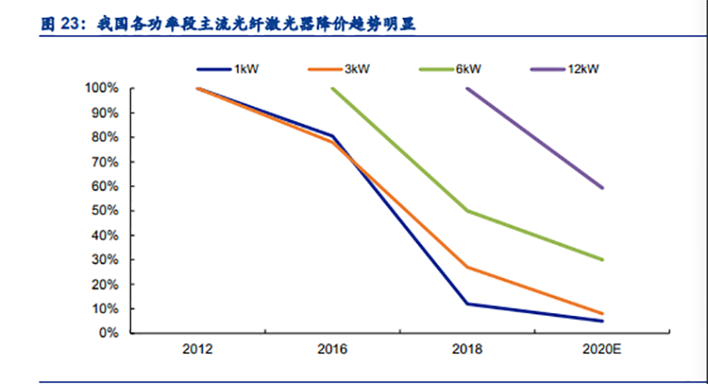 中國工業(yè)激光器能夠崛起,主要受益于中國制造大國地位以及新興產(chǎn)業(yè)的蓬勃發(fā)展。 中國機床工具工業(yè)協(xié)會最新數(shù)據(jù)顯示,2021年我國裝備制造業(yè)增加值增長12.9%。在良好的宏觀經(jīng)濟條件下,去年機床工具行業(yè)延續(xù)恢復(fù)性增長態(tài)勢,市場需求持續(xù)改善,進出口大幅度增長。2021年,我國與激光設(shè)備相關(guān)的金屬切削機床營業(yè)收入同比增長28.9%。 而最近幾年,LED、光伏、新能源汽車、鋰電等新興產(chǎn)業(yè)快速發(fā)展,也給中國激光器提供了用武之地。大族激光披露,去年P(guān)CB行業(yè)專用設(shè)備、動力電池行業(yè)專用設(shè)備、Miniled專用設(shè)備、Led封裝設(shè)備等業(yè)務(wù)訂單及發(fā)貨均較上年大幅增長。 中國工業(yè)激光器能夠崛起,還倚賴企業(yè)積極向上游環(huán)節(jié)、高端市場拓展。2020年,銳科激光不斷提升在高端激光器產(chǎn)品研發(fā)和可定制化成套解決方案的能力,萬瓦級激光器累計銷售超過800臺,同比增長543%。公司多模100kW光纖激光器市場若拓展順利,未來將打開航空航天、輪船、高鐵、核電等相關(guān)市場。 不過,在市場格局轉(zhuǎn)變過程中,中高端激光器價格戰(zhàn)持續(xù)數(shù)年。中科院光電行業(yè)研究人士、《中國激光產(chǎn)業(yè)發(fā)展報告》執(zhí)行主編葉茂介紹,2020年國產(chǎn)3kW以上光纖激光器出貨量超8000臺,隨著功率繼續(xù)上移,在3kW-8kW產(chǎn)品段,國內(nèi)市場的競爭趨于白熱化。 業(yè)內(nèi)人士認為,未來價格戰(zhàn)將由主流功率段向超高功率段蔓延。
